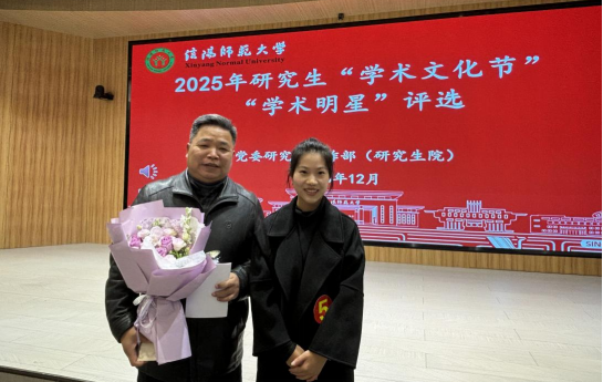 12月25日,信阳师范大学研究生2025年“学术文化节”学术明星评选活动在大学生活动中心二楼博雅讲堂举办。crown皇冠体育平台2023级研究生杨紫玉从众多候选人中脱颖而出,荣获“学术明星”称号。