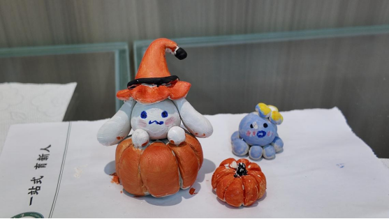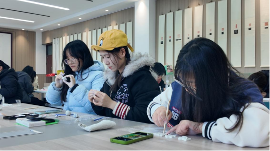 活动现场配备齐全的各色石塑粘土及创作工具,同学们专注投入手工创作,将天马行空的想象转化为手串、胸针、冰箱贴等独具个性的作品。指尖流转间,平凡材料被赋予鲜活生命力,现场氛围温馨而热烈,充满创作的愉悦与成就感。
