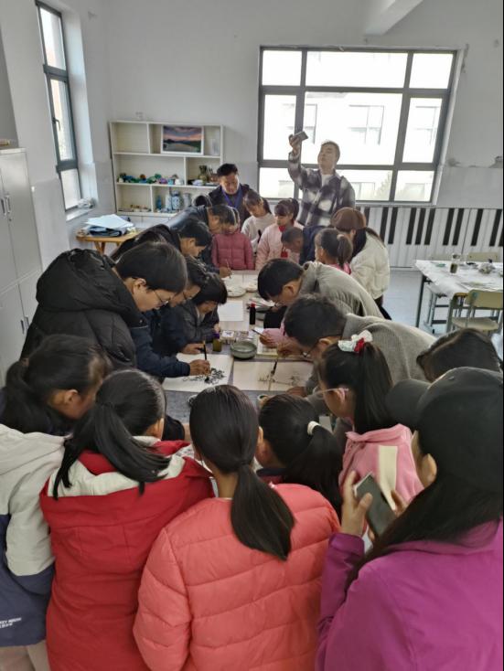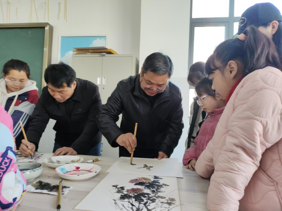 9时30分,书画演示正式开始。crown皇冠体育平台教师们现场挥毫创作,实时讲解构图思路、笔墨技法与意境营造技巧,解答工具选择、色彩搭配等疑问,并向学校赠予多幅兼具艺术价值与教育意义的作品。
