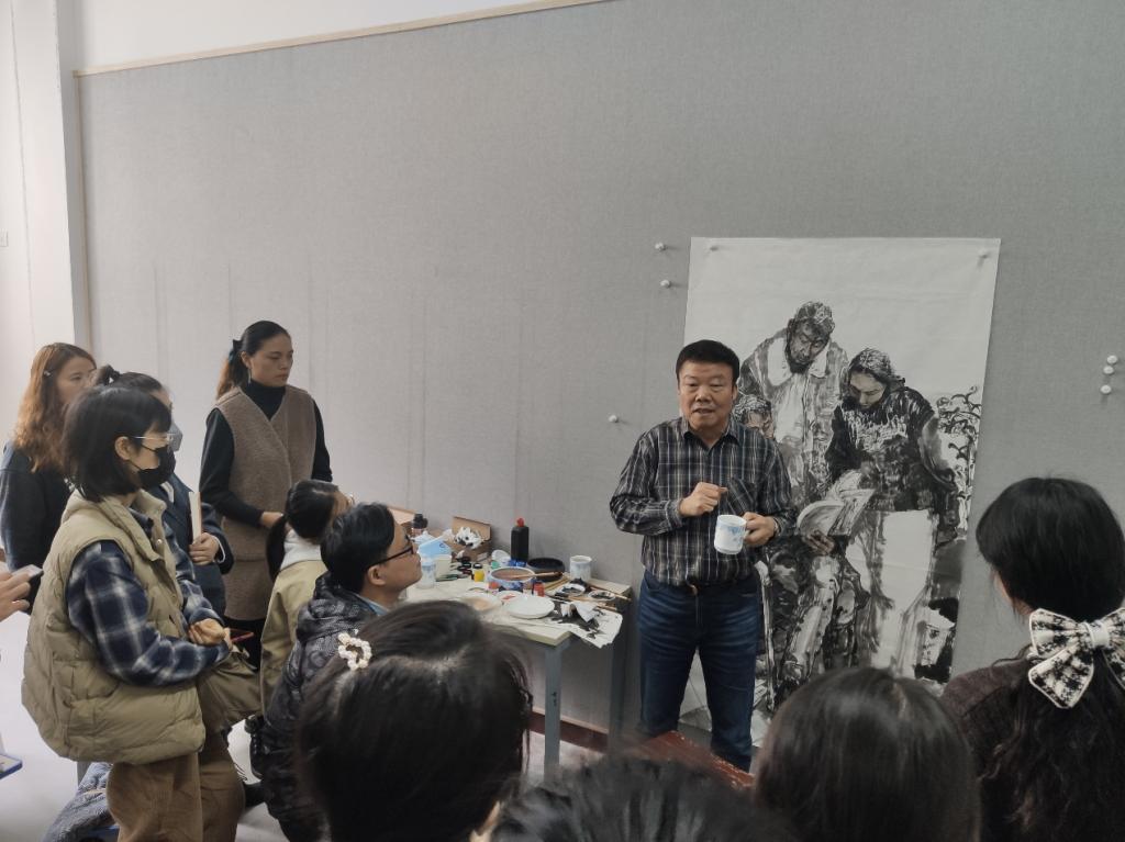 示范结束后,袁教授与在座师生进行互动交流,为同学们进行美术创作提供了具体的借鉴和指导,进一步开阔了学术视野。此次讲座共持续四个小时。
