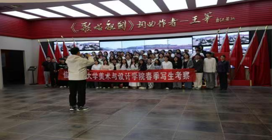 在甪直古镇的青石板路上,在荡口古镇的枕河人家前,教师团队创新教学方式,将思政课堂搬到写生现场。邹东升院长在指导学生描绘古镇古桥时,以建筑为载体讲述党史故事:“这座通济桥始建于明代,抗战时期曾是地下交通站,桥身的弹孔痕迹见证着革命先辈的奋斗足迹,我们要用画笔展现它们承载的历史厚重感。”在王莘故居,当《歌唱祖国》的旋律回荡在雕花门楼间,师生们通过情景教学重温词曲创作历程,集体合唱环节将爱国主义教育推向高潮。